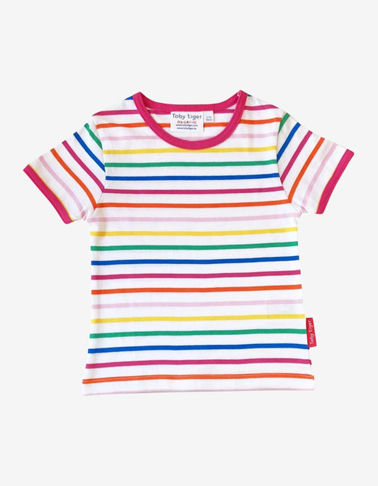 Organic Pink Rainbow Stripe Print Short-Sleeved T-Shirt