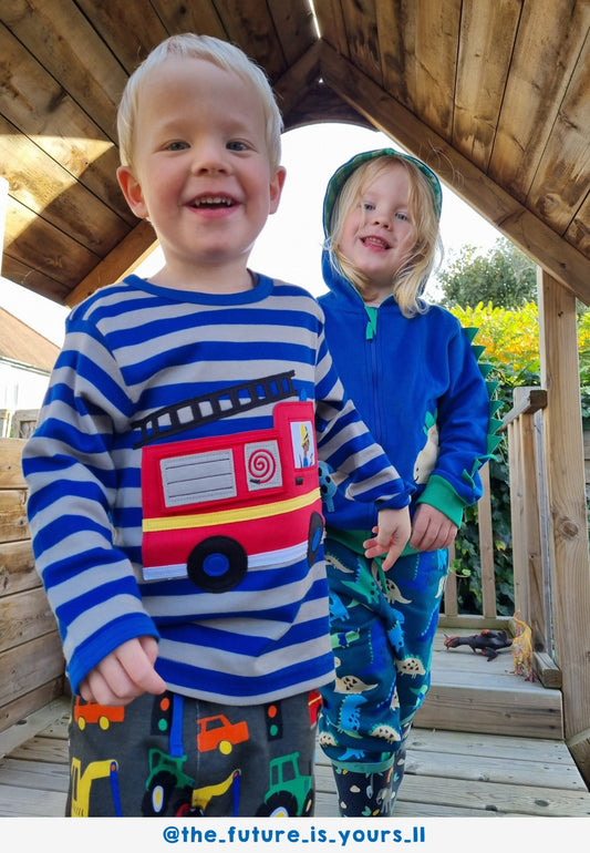 Organic Blue Fire Engine Applique Long-Sleeved T-Shirt