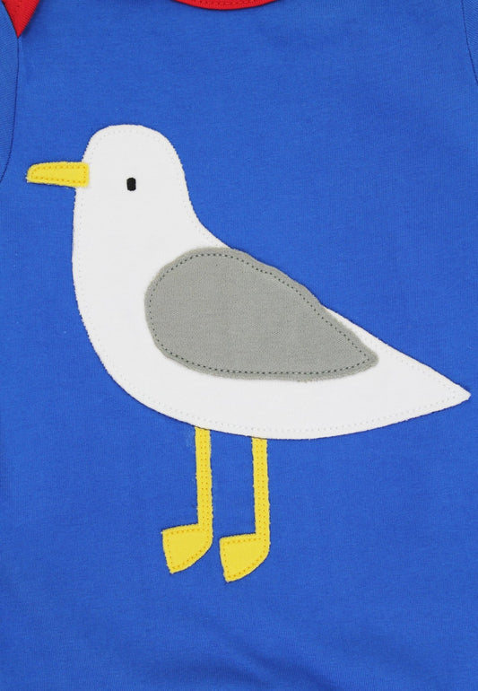 Organic Seagull Harbour Applique Blue Sleepsuit