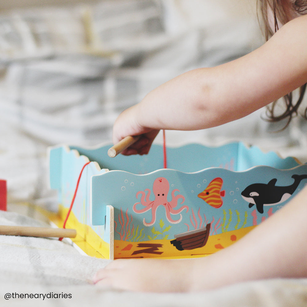 Will you nab the catch of the day? Little hands need to cast their magnetic rods into the wooden fish tank. Catch lots of brightly coloured creatures including fish, seahorses and crabs with this fantastic magnetic fishing game.