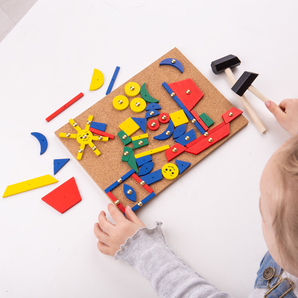 A favourite across generations of children, Pin-a-Shape boards never go out of fashion. The brightly coloured wooden shapes can be combined and pinned to the board with shiny pins to create an endless array of different pictures and scenes. A fantastic arts and crafts for kids game!